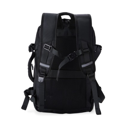 Mochila de Nylon USB 20 Litros com quatro compartimentos, sendo o principal com bolso para notebook 15,6 e tablet 12,4. Com divisórias internas para acessórios e porta chave, a mochila possui adaptador USB externo, alça para encaixe em malas de viagem, alças de compensação, duas alças de mãos, área costada com revestimento espumado e alças para as costas com faixas refletivas e revestimento espumado.